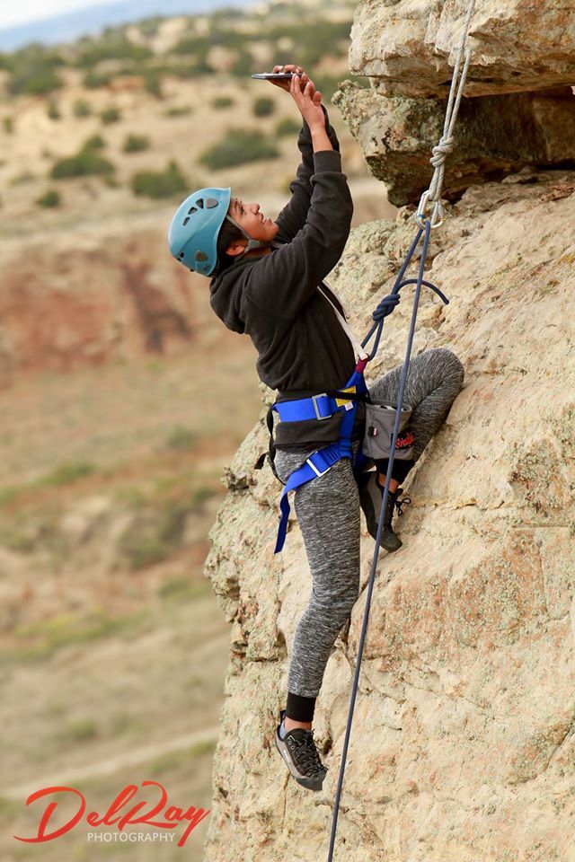 North Face Explore Fund student takes a moment for a selfie in Mentmore Canyon. Thank you Del Ray Photography