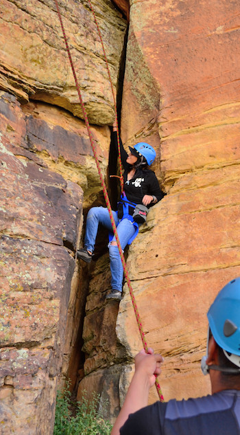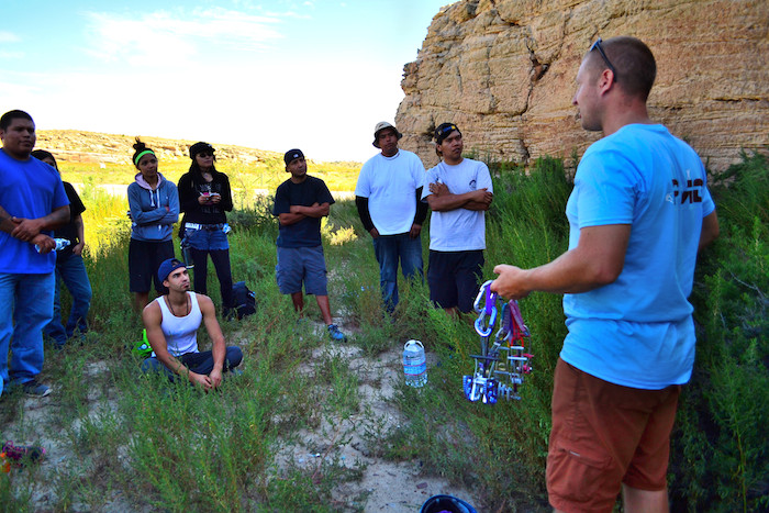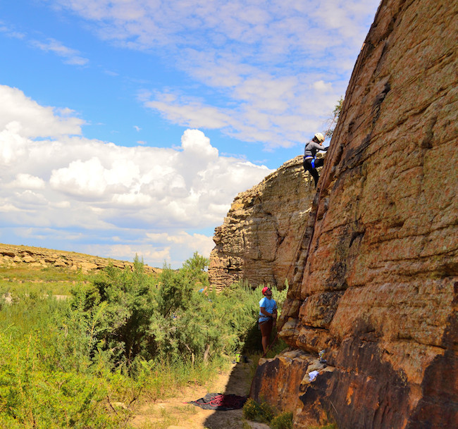 Day 1 took place on August 30, 2015 and we could not be happier with the turnout, strength, and motivation demonstrated by the students. Students learned the current state of rock climbing through lecture of historical events and different styles of the sport with demonstrations from PMG guides. Leave No Trace ethics and Erosion Control were emphasized by both PMG and the Southwest Conservation Corps while the students practiced technical climbing skills at Mentmore Climbing Area. PMG is very grateful to have the privilege to instruct this group of young people and work with the Southwest Conservation Corps to make every class a complete success. Thanks again to all who made this amazing event possible! Take a peak at the photos from Day 1 and check back for more updates from Mentmore!