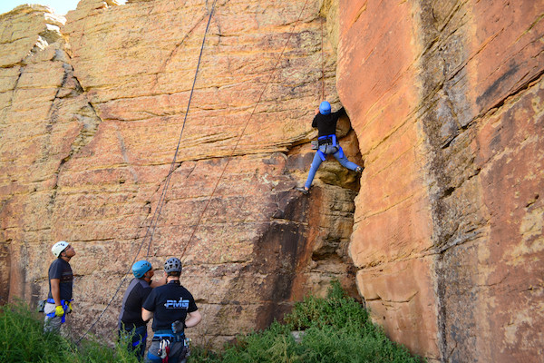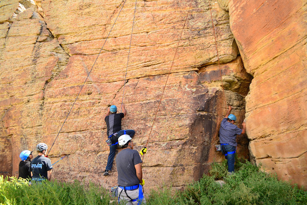 We are pleased to have wrapped up Day 3 and 4 in Mentmore Canyon in good fashion. The two days re-emphasized proper Belaying technique and Technical Movement over rock, as well as mastery of constructing equalized and redundant anchor systems. The motivation and determination of our students allowed us to complete our curriculum goals with the students and introduce numerous students to rappelling from the anchors to the base of the cliffs.