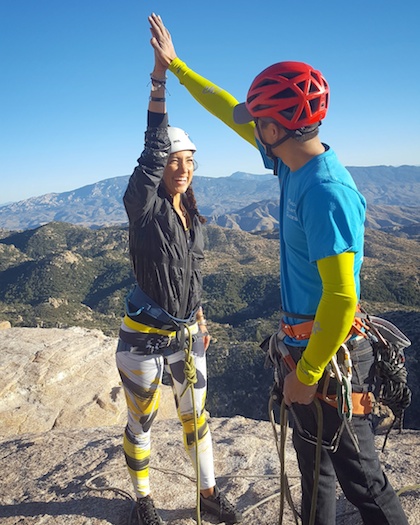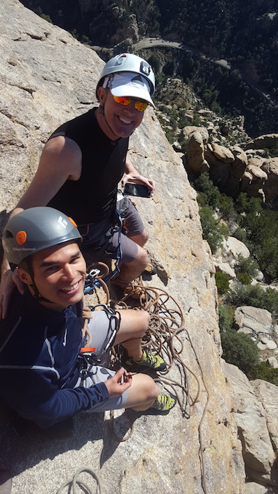 Clients Chase and Kim pushing their limits of exposure and loving it at Windy Point, Mt Lemmon.